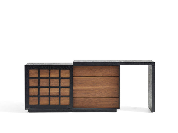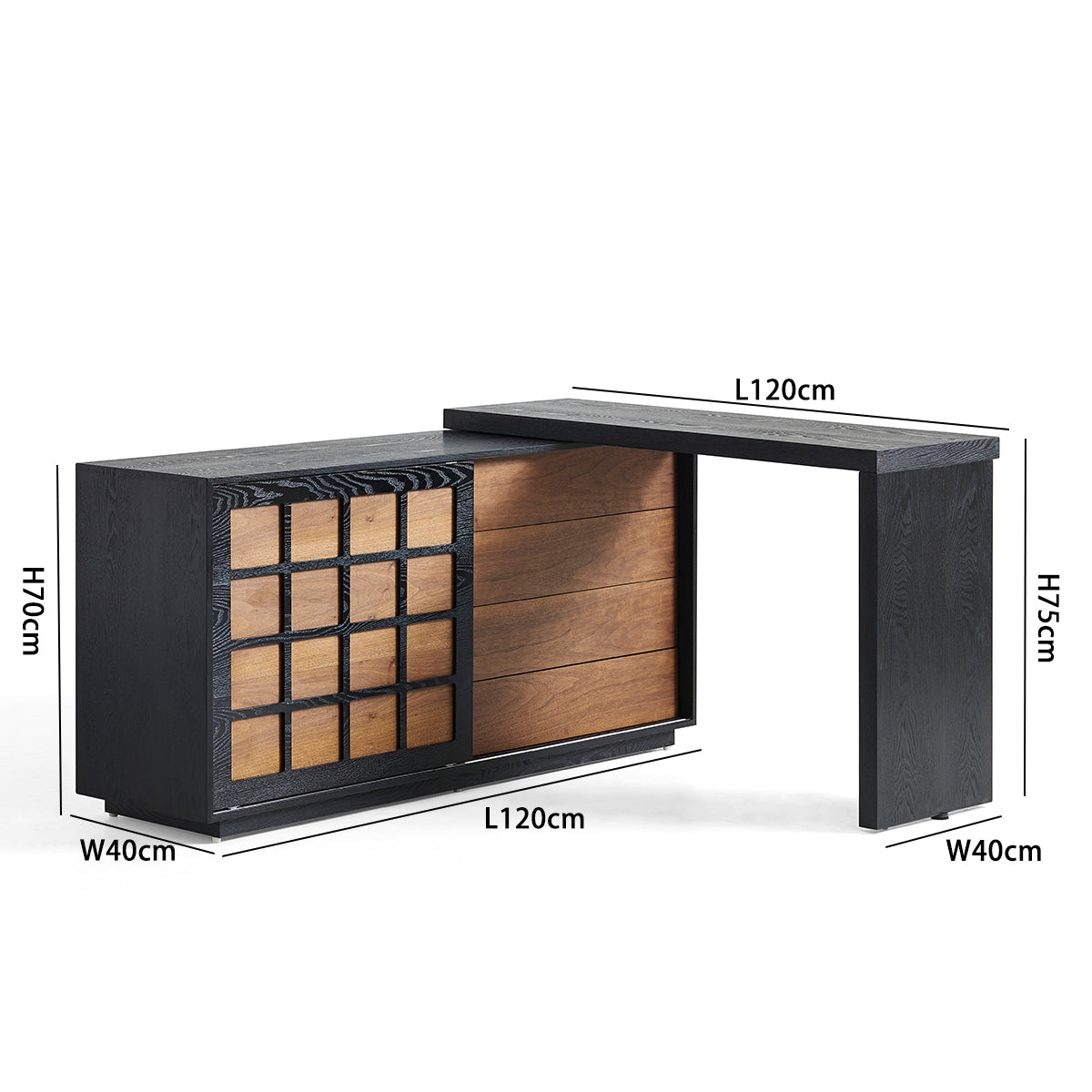 Mid-Century Minimalist Dressing Table with Push-to-Open Drawers Versatile Placement (Straight/L-Shape)
