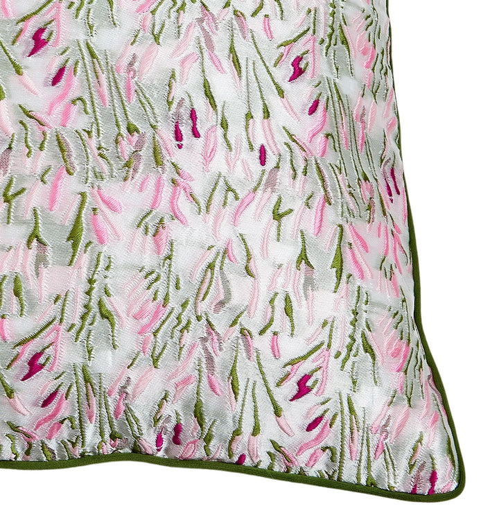 Double-Sided Jacquard Silk-Like Fabric Square Decorative Pillow with Pink Tulip Embossing